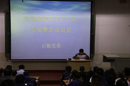 5月11日下午,后勤党委在西阶梯多媒体教室,召开了在教育领域开展腐败和不正之风专项整治动员会。